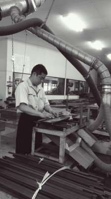 積層強化木と呼ばれる特殊合板を製材していきます。